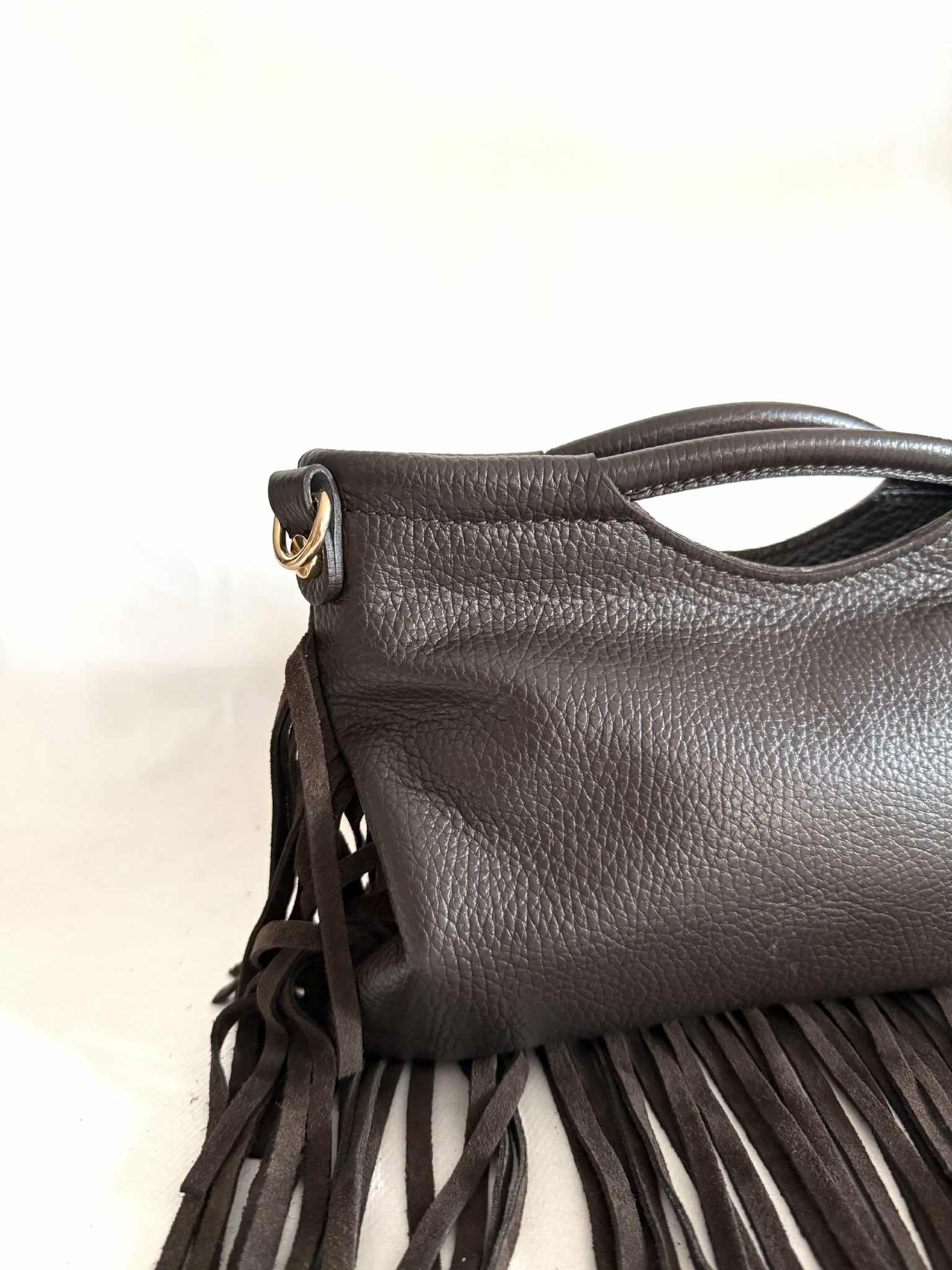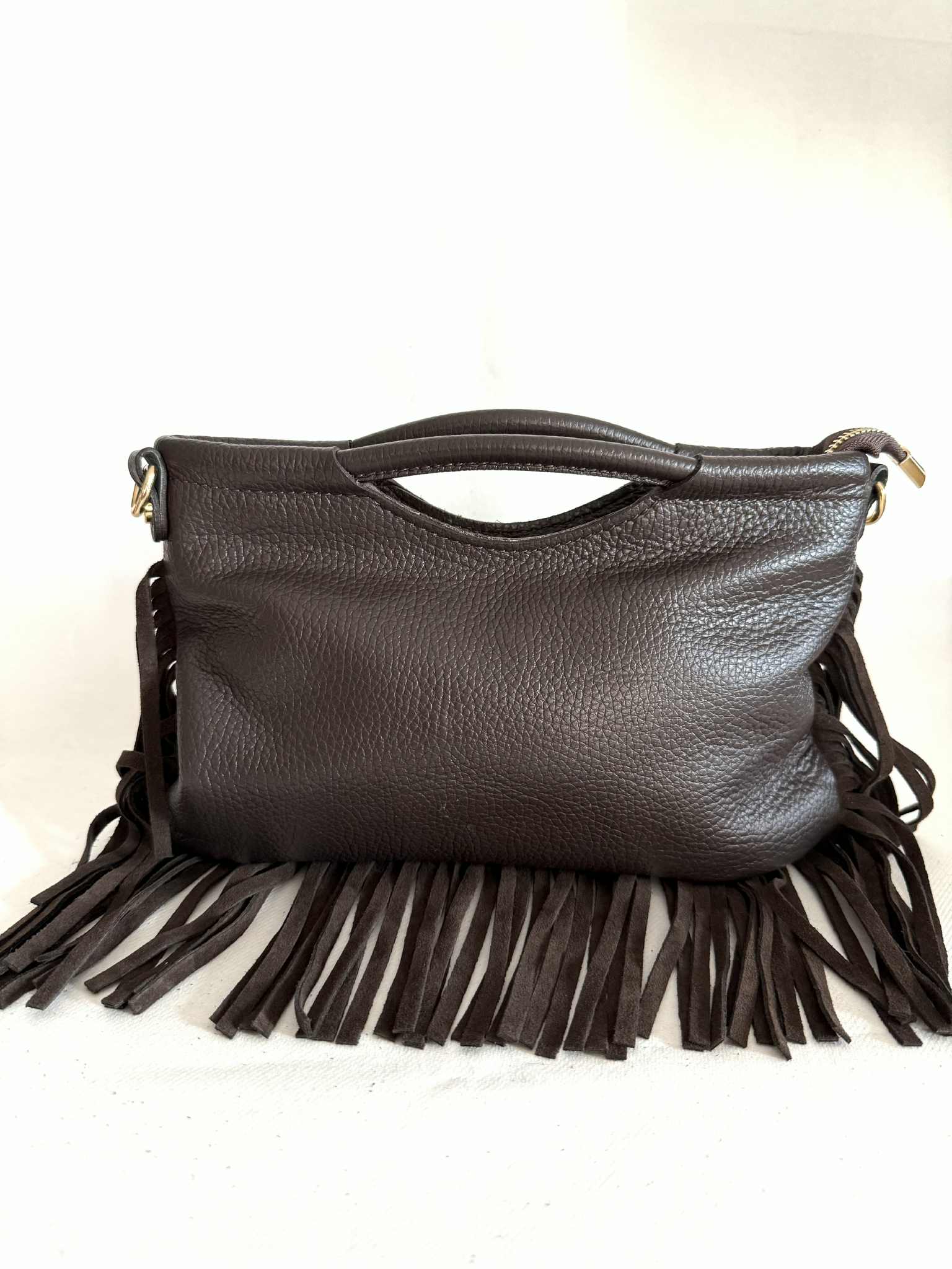 - Sac en cuir marron style pochette avec franges sur les côtés
