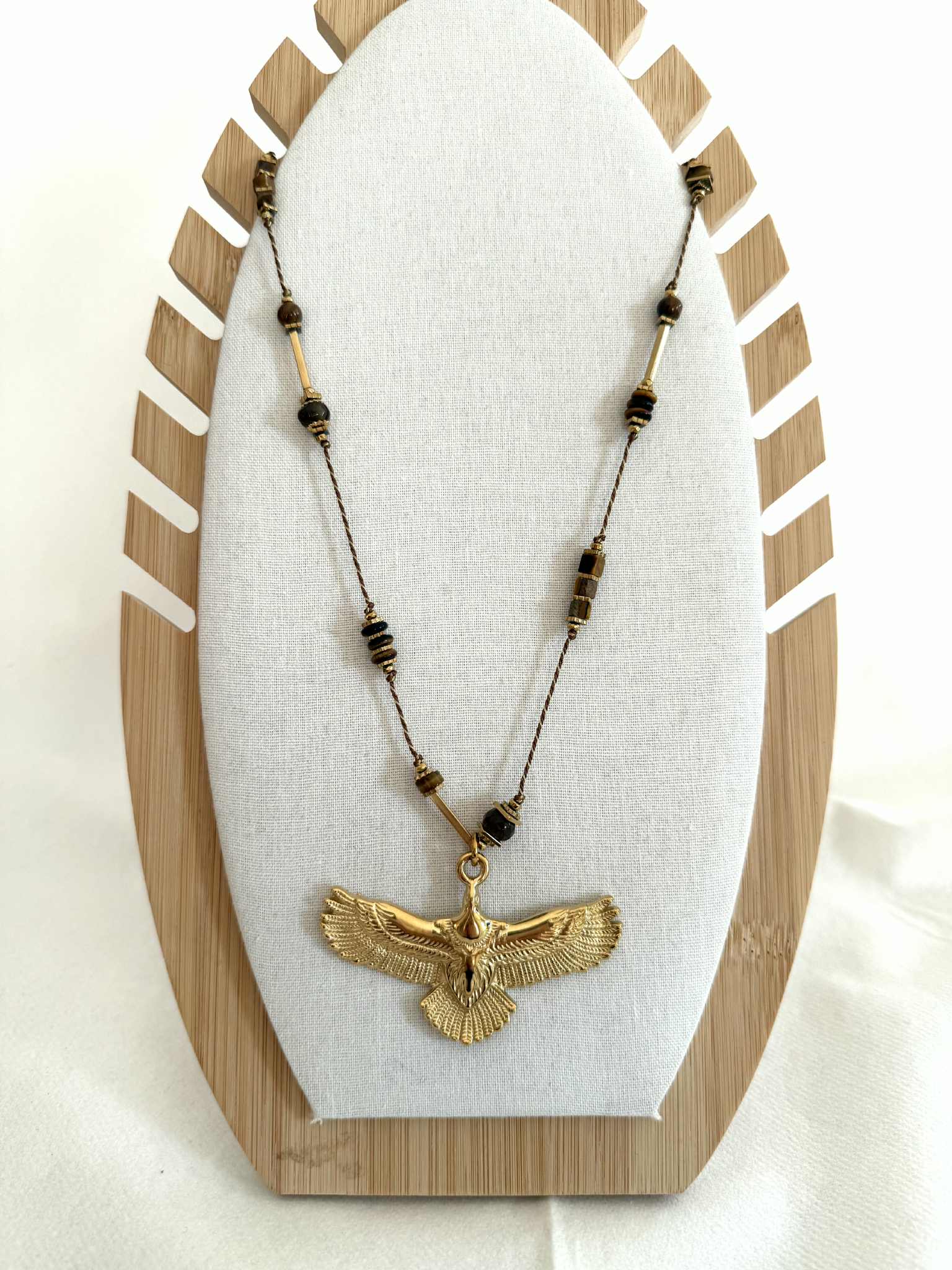 - Sautoir avec un aigle et perles marron